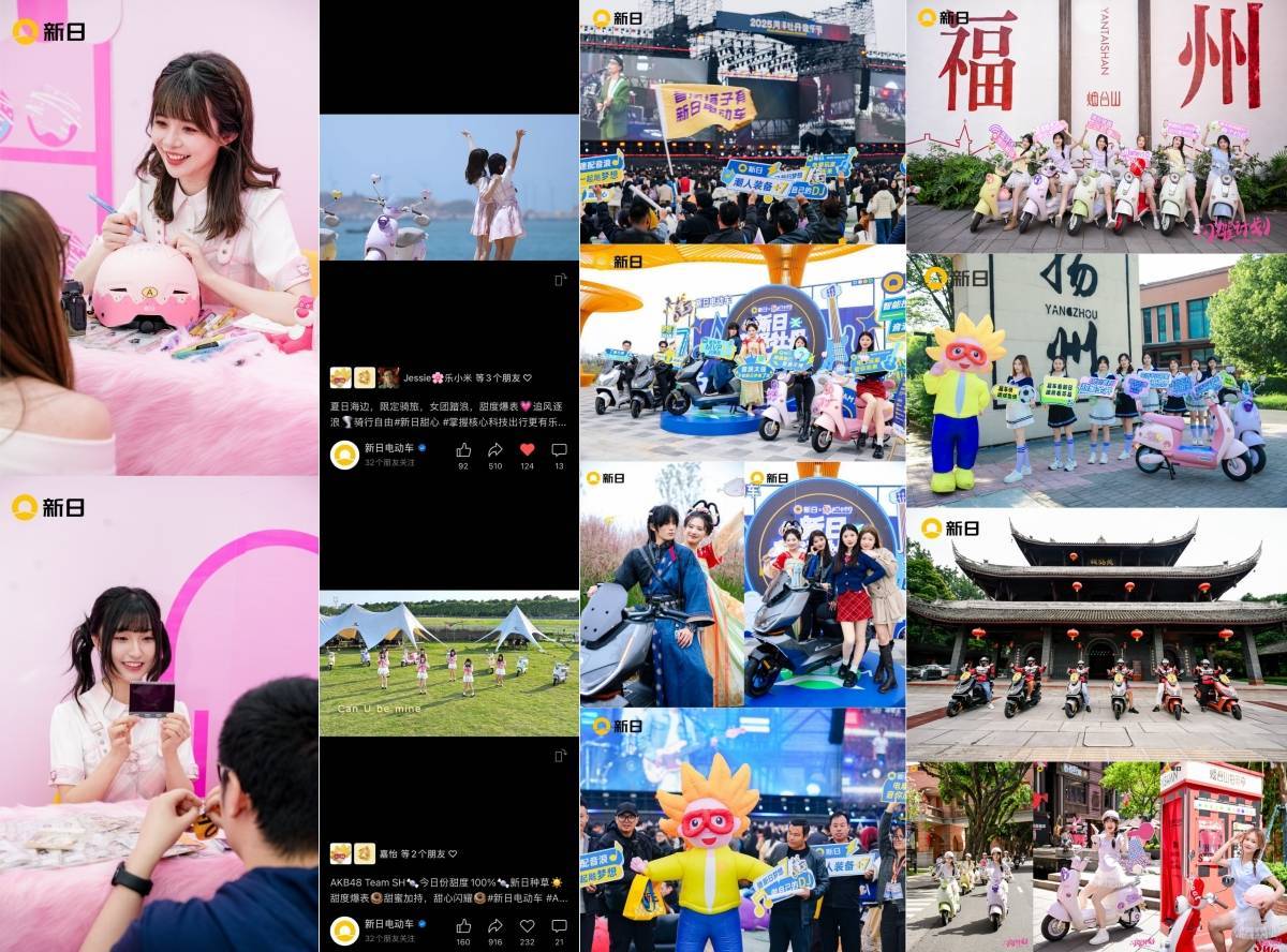 今年,新日升级SUNRA OS智驾系统,守护用户全场景出行安全与便捷。注重圈层用户需求,布局“男女双赛道”车型矩阵,兼顾颜值、性能、驾控,吸引了年轻用户的关注喜爱。在体验感知上,新日与人气女团AKB48 Team SH携手,通过粉丝握手会、海边骑行vlog、夏日专属MV等,辐射一众年轻群体,将流量转化为用户参与感。此外,新日在菏泽音乐节打造“骑行+音乐”跨界现场,把年轻人聚在一起,用城市云游骑行,串联地貌风华,与年轻人玩在一起。多重动作紧系用户价值核心。